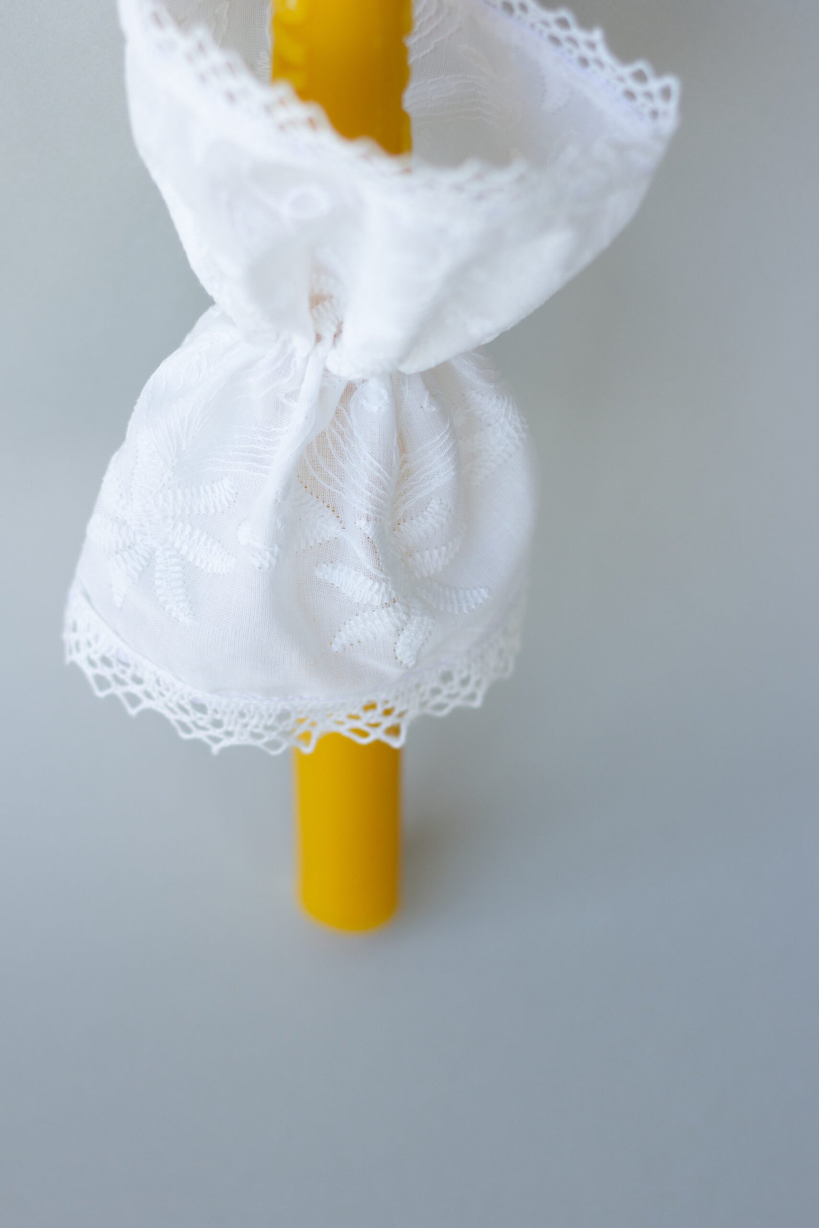 siuvinėtos medvilnės krikšto žvakė